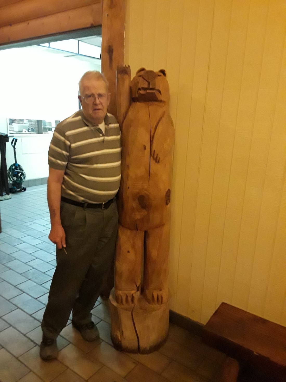 Dad seemed especially excited. Dad was even more excited to eat steak and pose by a wooden bear in Oklahoma: