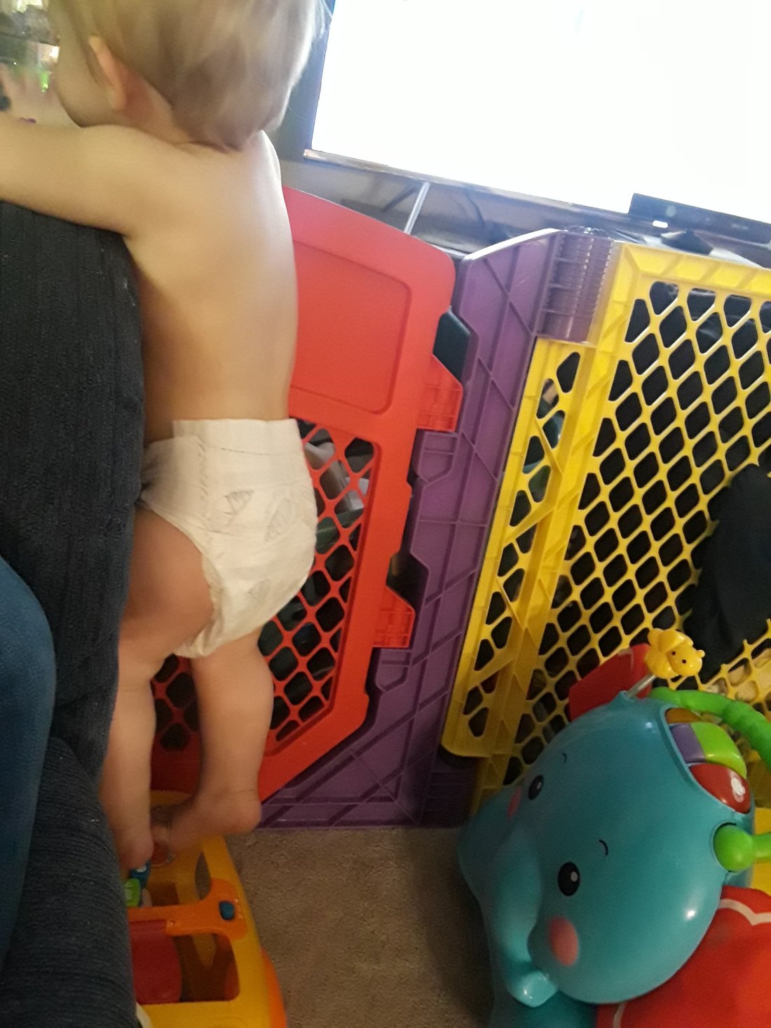 Hi everyone! This was a good week. IL learned to climb, as you can see above. He’ll push a toy up to a gate and try to get over. If they toy isn’t big enough, he’ll try another.