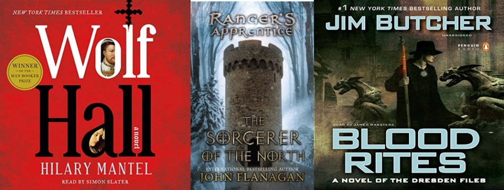 I’m still currently listening to Wolf Hall, Blood Rites, and reading Sorcerer of the North: