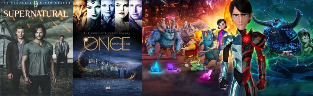 Currently watching Supernatural Season 9 with Aaron, Once Upon a Time Season 1 with D and Aaron, and Troll Hunters Season 1 with M and Aaron.