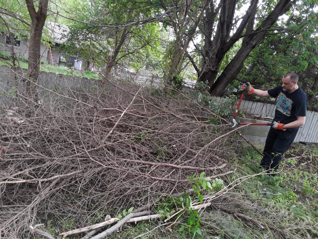 Aaron helped trim the trees as well as processing the branches afterwards. Unfortunately, I didn’t think of getting an “after” shot of all the processed wood, but he did a fantastic job breaking it down into yard waste and firewood. Now we just have to fill the yard waste bucket once a week for an entire season to get rid of it all.