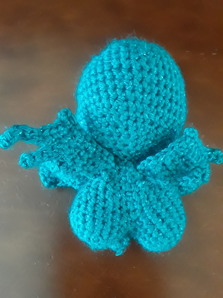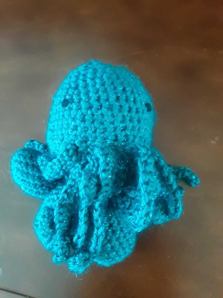 Aaron finished his crocheted Cthulu, and has started on a unicorn for Deirdre.