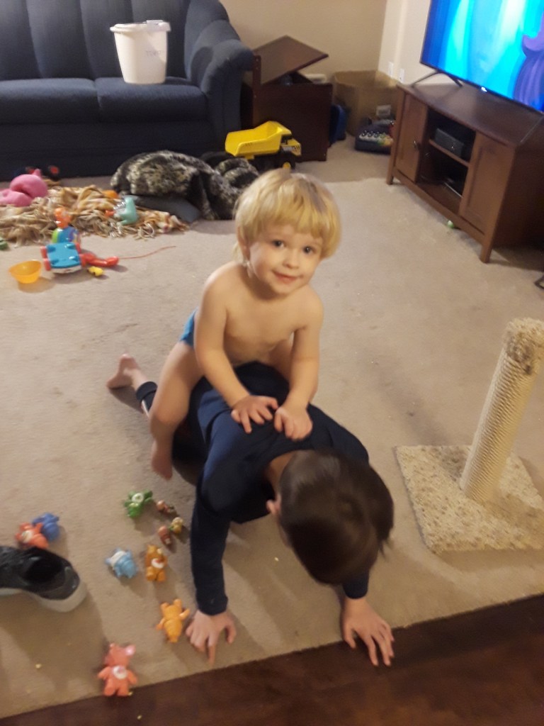 IL2 began potty training again. This time, I will try not to get burnt out putting him on the pot every 2 hours. And the pediatrician told me to give him prune juice to encourage him to poop comfortably. He’s pooped in the potty twice and peed once already!