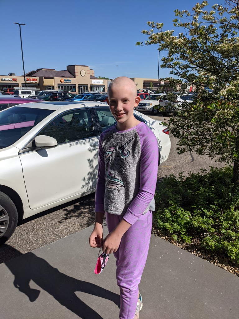 Over the past few months, I have been bugging D11 to brush her hair. She just tells me I’m insulting her hair, and gets all grumpy about it. Finally, I asked her “do you know what the back of your head looks like?” She answered no, so I took a picture and showed her. She was horrified. Soon after that, she decided to shave her head if the stylist were unable to get the matt out.