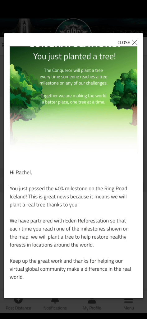 Also on Tuesday, I reached my 40% mark on my Ring Road virtual walk challenge through Conqueror. They will plant a tree for me!