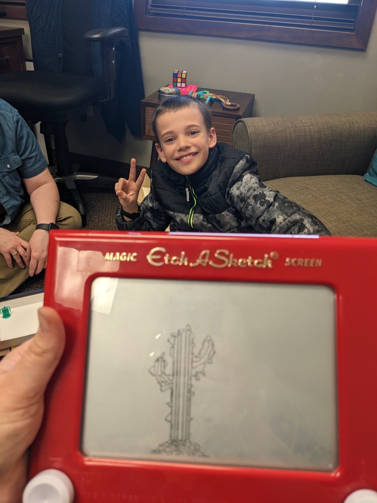 Friday was a full day. I got up early to talk to D13 because I hadn’t seen her the day before, then took M10 to school with his trombone. On our way home, IL4 and I stopped by the library, then went to speech therapy. Not long after that, we picked up M10 from school for an appointment. I had about an hour break after that, followed by an overnight shift with my client. I barely glimpsed D13 coming home from middle school play rehearsal.