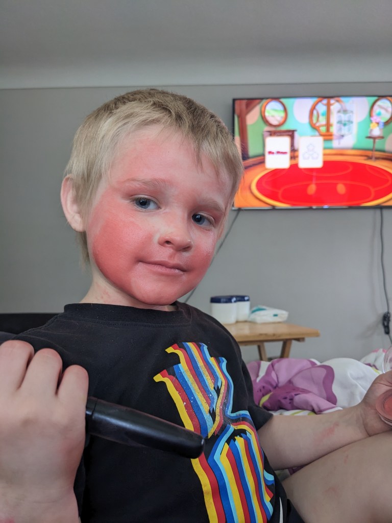 I decided maybe I’d gotten some into him. Maybe? So I started the 4 capfulls of Miralax. I was supposed to put it in Gatorade, but he doesn’t drink Gatorade, and I decided after the Exlax fiasco, I’d stick to nice familiar apple juice. Not a perfect solution, but whatever.