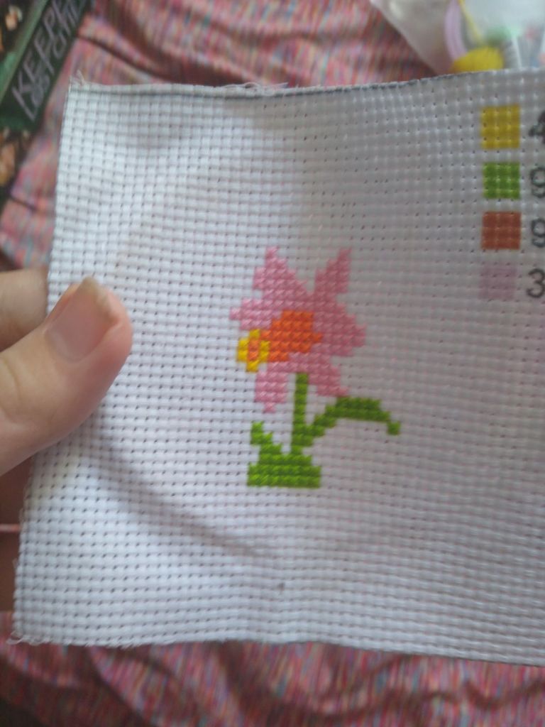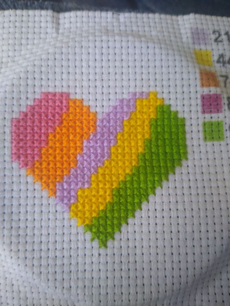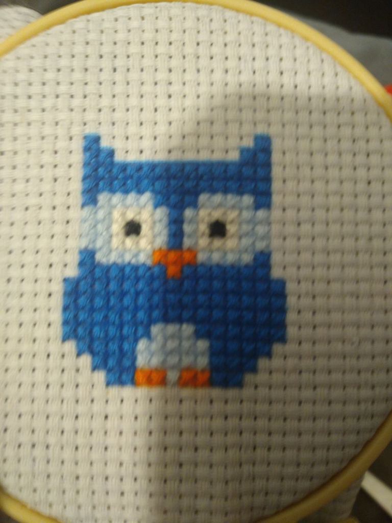 I picked up the birthday cake, which was decorated to look like a fire (it was really good, but I forgot to take a picture). When the kids got home, we had a nice dinner and cake. Then D13 taught M11 how to cross-stitch.