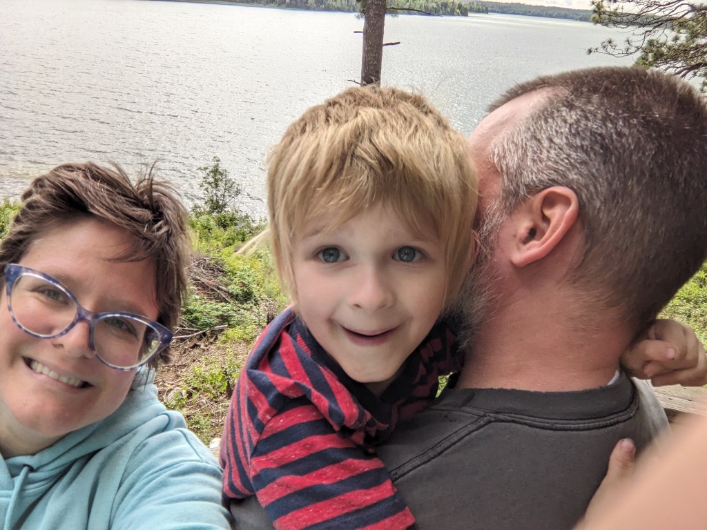 After that, we went back to the cabin and relaxed. IL4 fell asleep. When he awakened Aaron and I took him on a hike. The map suggested the trail was about 1 mile long, but I’d say it was closer to 3 miles. IL4 wouldn’t walk, and I thought carrying him a mile was doable, but about a mile in (guessing) he really wanted us to turn around, and we seriously thought we would be closer going straight than going back. But the trail just kept going, and IL4 was getting really heavy. Finally I turned on Alltrails on my phone to locate us. We weren’t on a trail according to Alltrails, but we could see that we were finally curving around towards our origin. So we kept on walking.