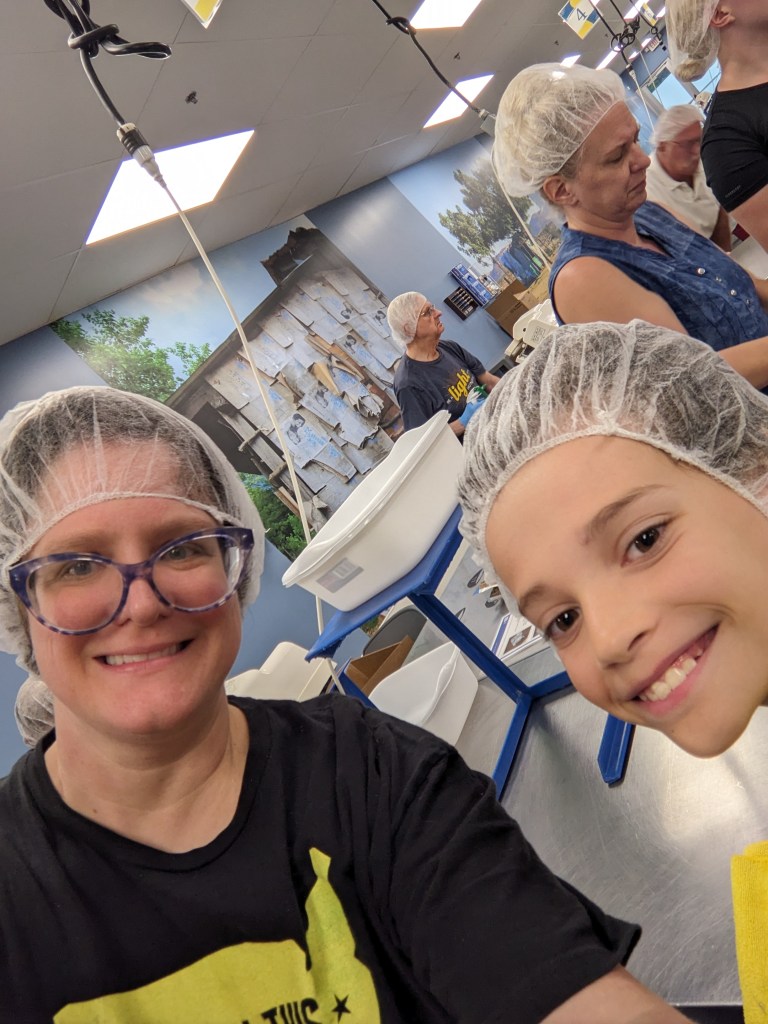 Thursday I went from work to work again, with a 1 hour nap in between. Immediately upon arriving home, I took M11 to Perkins, then to Feed My Starving Children, where we packed meals. After 30 minutes at home, I went back to work. I was home for 1.5 hours total, 1 of which I was asleep.