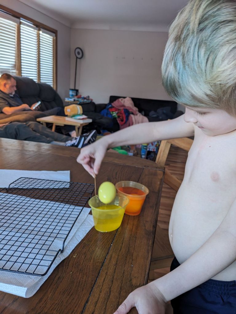 Thursday I went from job #1 to job #2. It was a relaxed day, and I was able to play D&D while my client watched TV. Upon coming home, I found dad and M11 in the middle of a Cobra Kai marathon. I cooked a salmon dinner, and then M11 and IL5 colored eggs. I focused the rest of the night on getting as much reading in as I could to see if I can still reach my weekly and monthly goals. I met my weekly goals with one day to spare, but I still need to finish 3 books to complete a monthly goal. I have 3 in mind… It’s been a slow reading month. D14 arrived back from her trip, but I didn’t see her, as I was in bed when she came in.