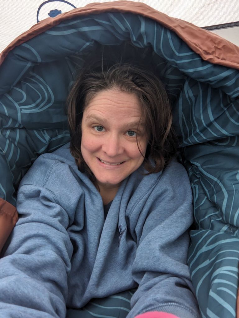 Saturday, Aaron, IL5, and I slept in till about 10:30am. We ate a quick breakfast, and then went on a short hike. Unfortunately, we had to turn around after about 1.5 miles (so 3 miles round trip) because my foot felt like it was getting a blister. Next time, I’ll bring my hiking shoes camping.
