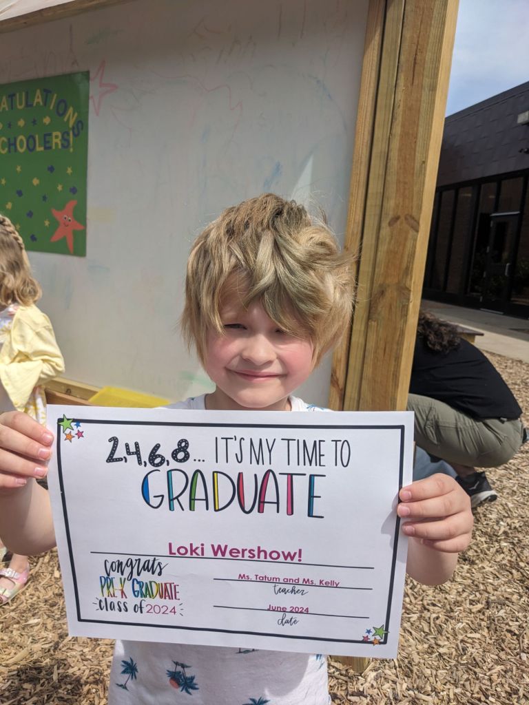 Thursday I went from work to work, as usual. I left my dayjob early because IL5 had a pre-K graduation. The class sang a couple songs, then each told the parents what they wanted to be when they grew up. IL5 said he wanted to be a superhero.