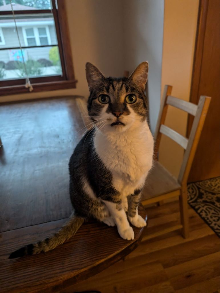 Monday I accidentally slept through swim lessons for IL5. I turned my alarm off at 9 and fell back asleep till 11:15. Oh well. D14 helped out at the middle school library. M12, IL5, Aaron and I went to the pool and had a lot of fun, though IL5 threw a temper tantrum when we left. Then we all went to Buffalo Wild Wings with D14. By then, we didn’t have enough transition time to get IL5 cheerfully to soccer, so we skipped that too. M12 went to Boy Scouts. Freyja, one of the kittens, dashed out the door when I left for work, and I had to chase him down. So I ordered a tag with our phone number on it, and hope it comes before he escapes longer-term. People around here tend to grab up kitties.