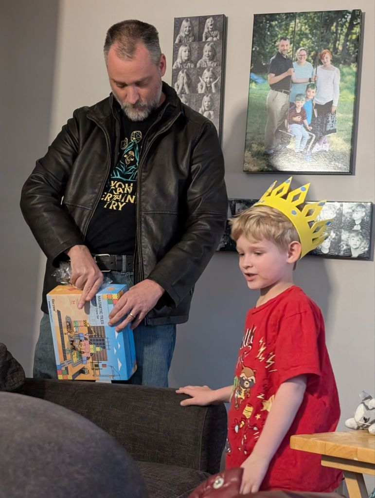 Immediately upon arriving IL6 wanted to play magnetic tiles for quite a long time, then went to sit in his bedroom with me. After a while, he and I did a homework assignment in which he had to decorate a gingerbread man. He made it look like Catnap from Poppy’s Playtime Chapter 3. We put it in a purple bodysuit, claws, ears, and a huge mouth.