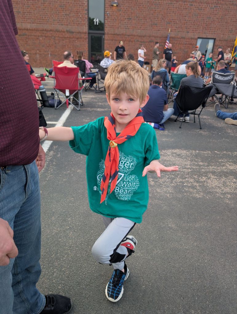 Thursday I ran quite a few errands in the morning, then I took dad to cardiac rehab. In the evening, IL6 ranked up from Lion to Tiger in Cub Scouts.