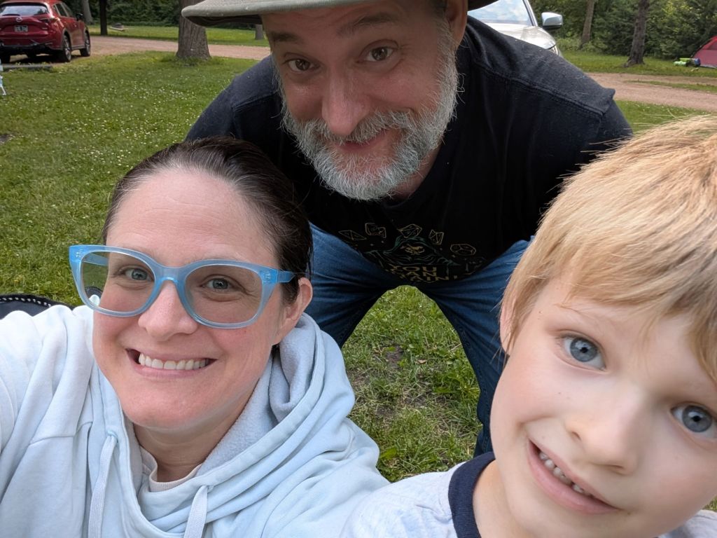 Friday I took IL6 to his two Friday appointments, then we played Kirby while Aaron mowed the lawn. Next, Aaron, IL6, and I went camping. M13 went to his mom’s, and D15 stayed home.