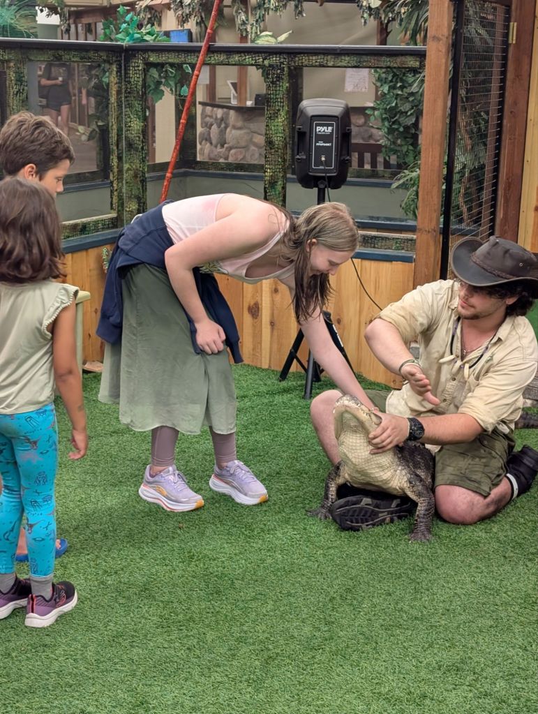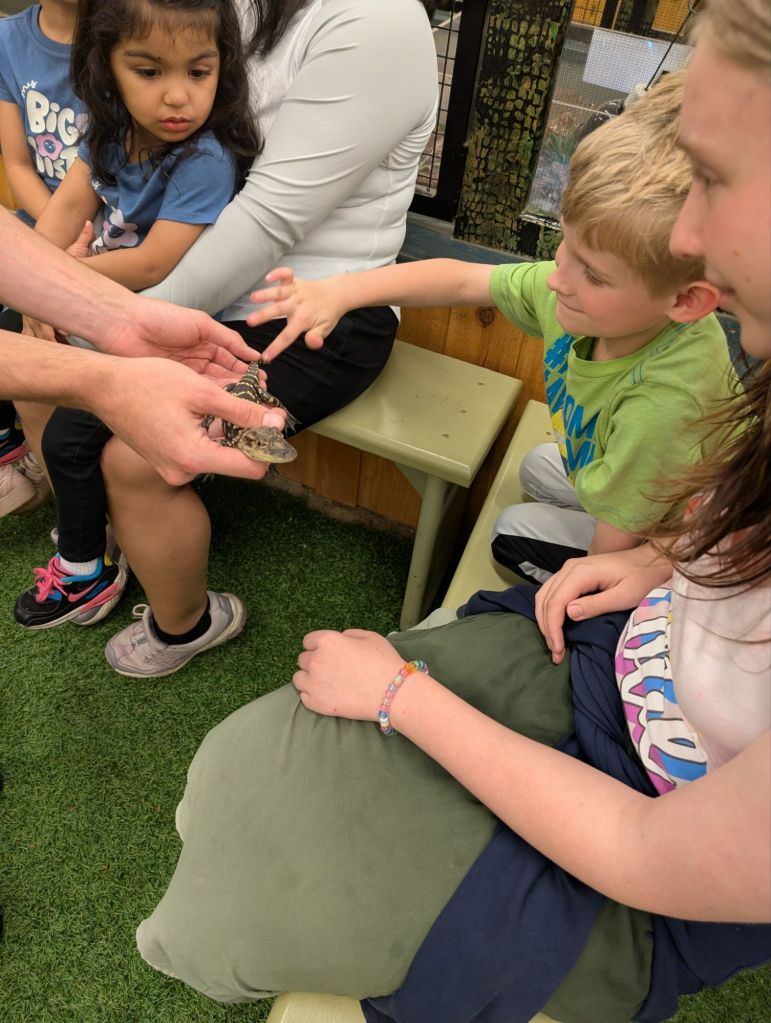 Saturday Aaron cooked waffles and I cooked bacon. Then we took IL6 and D15 to the Sustainable Safari, an indoor zoo of rescue animals. The kids got to pet a baby alligator and an 8-year-old alligator. D15 pet a couple of capybaras and IL6 pet some bunnies.