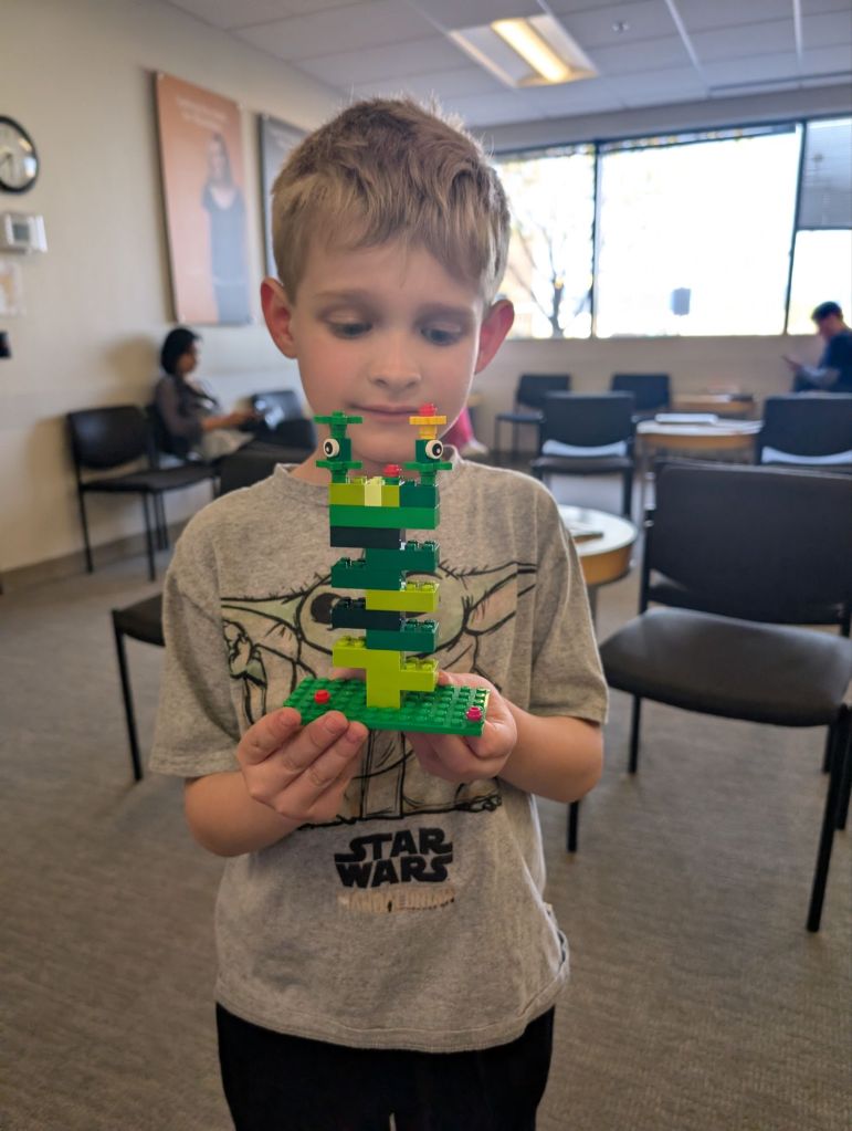 Wednesday, I had a virtual appointment in the morning. I made some baked beans. Dropped Dad off at the gym. Made a bunch of phone calls. Took IL7 to an appointment. Played Scribblebots with IL7.